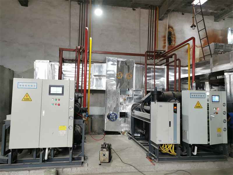 山东铭香宇食品有限公司是一家大型的肉泥加工生产厂家,该公司的产品主要是用鸡脖、鸭脖、牛、羊肉做原料,加工后用于火腿,肉丸烤肠加工,该公司冷库以前是以氨机降温为主的冷库,由于使用年限过长设备老化,液氨经常泄漏。本公司载冷剂系统推广后,客户多次考察、走访,最终选择本公司设计的制冷系统,2020年6月份对全厂冷库级机房进行系统改造,配我司单机双级变频式螺杆机组和定频式螺杆机组各一台 ,改造后目速冻量120吨每天,冷藏1500平方。目前机房操作人员反馈设备操作简单(一键启动,全自动控制),安全性能非常高,且躁音小能耗与氨机接近。